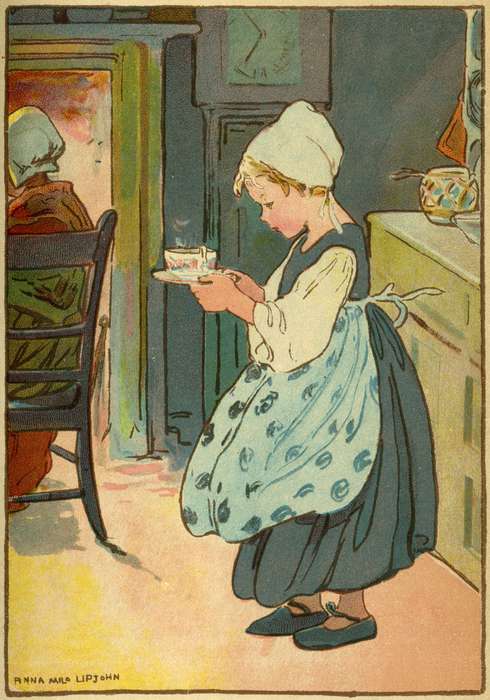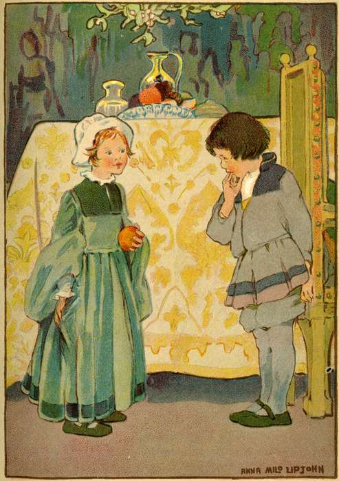 „Na, das sind die rechten Schelme,“ sagte die alte Dorothee lachend, „Schatzgräber ihr, gelt, ihr habt gerade den rechten Pfefferkuchenhunger?“ „Ja,“ riefen die fünf, und ein Bube, der braune, krause Haare hatte und Augen rund und dunkel wie zwei Herzkirschen, aber so unnütz wie ein paar Spatzenaugen, rief: „Es könnte jede Woche Nikolaustag sein, das wär mal fein!“