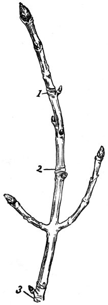Horse-Chestnut Twig, showing Three Years’ Growth.