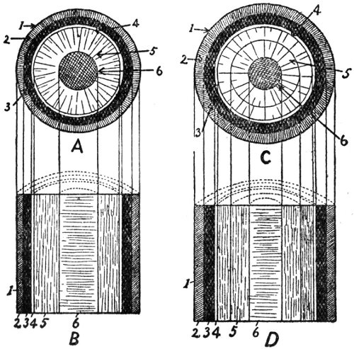 Diagram Sections of (A and B) a One-Year Old and (C and D) Two-Year Old Stem.
