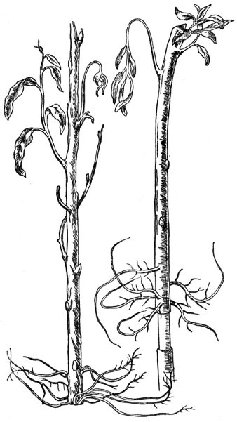 He placed four willow twigs in a glass of water. But from two of these twigs he first removed a broad ring of the bark and outer layers, leaving about an inch of the wood bare near the lower end of the twig.