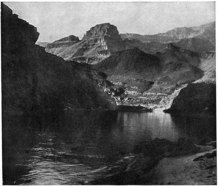 Standing upon that shore one can barely credit Powell’s achievement, in spite of its absolute authenticity. Never was a more magnificent self-reliance displayed than by the man who not only undertook the passage of Colorado River but won his way. And after viewing a fraction of the scene at close range, one can not hold it to the discredit of three of his companions that they abandoned the undertaking not far below this point. The fact that those who persisted got through alive is hardly more astonishing than that any should have had the hardihood to persist. For it could not have been alone the privation, the infinite toil, the unending suspense in constant menace of death that assaulted their courage; these they had looked for; it was rather the unlifted gloom of those tartarean depths, the unspeakable horrors of an endless valley of the shadow of death, in which every step was irrevocable.