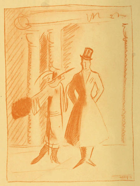 “Perhaps, Daunchey, you’d better not send just yet,” he said quickly. And partly to assuage the aged bookseller’s disappointment, partly to ward off that too often told anecdote of how the P … of W … had entered once to ask for the[230] copy of the (current) Sporting Times, Gaveston ordered two copies of La Dame aux Camelias, in its most unexpurgated form.