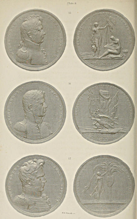 Here, as in “Old Rome,” where the public honors are open to the virtue of every citizen, the lives of those heroes who have been distinguished by their country’s highest rewards, will develop virtuous deeds, heroic exertions and patriotic efforts, when all now commemorated shall be no more. Nor is it difficult to predict, that a like high pre-eminence of virtue and of public services will long perpetuate the glorious annals of America. It has appeared to us that there has been no publication in which the illustrious commanders of our two wars, who have been signalized by the presentation of gold medals, &c., have been singled out, and their lives illustrated in connection with graphic delineations of the beautiful and glorious emblems of their country’s gratitude. This work is now offered to the public as a text-book of men who have sealed their patriotic devotion with wounds and scars, as well as of historical incidents sacred to patriotism. Our plan admits of none of the embellishments of romance; on the contrary it confines itself to the simple facts as they really were, giving to each commander that share of bravery and virtue which his country has thought proper to signalize by the medals, &c., awarded him. The biographical scope we take admits only of the relation of the principal events of their lives, more particularly in the department in which they rose to fame, and we have endeavored to do our part with all the accuracy that conciseness will allow; leaving to others to give more finished and full-sized portraits, which, in judicious hands, may be the more entertaining and instructive, as they are more in detail.