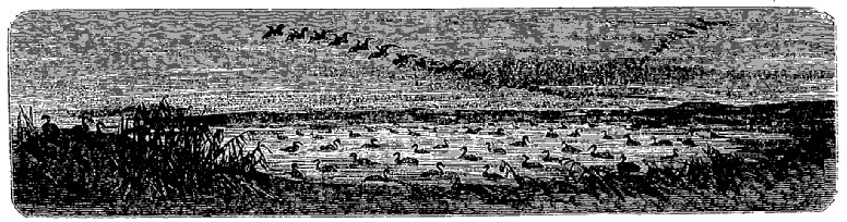 Ainsi, par exemple, je me souviens qu'un jour je vis sur un lac, au bord duquel m'avait amené une de mes excursions, quelques douzaines de canards sauvages, trop disséminés pour qu'il me fût permis d'espérer en atteindre d'un seul coup un nombre suffisant. Pour comble de malheur, ma dernière charge était dans mon fusil, et j'aurais précisément voulu les rapporter tous, ayant à traiter chez moi nombre d'amis et de connaissances.