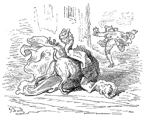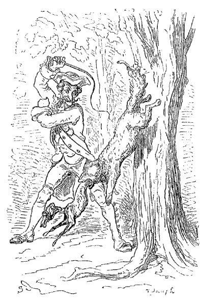 Et je l'accueillis avec une si belle décharge, qu'il perdit du coup l'envie de plus jamais monter aux arbres.