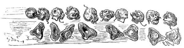 Les pépins de raisin lunaire ressemblent exactement à nos grêlons, et je suis fermement convaincu que, lorsqu'une tempête détache les grains de leur tige, les pépins tombent sur notre terre et forment notre grêle. Je suis même porté à croire que cette observation doit être connue depuis longtemps de plus d'un marchand de vin; du moins j'ai bien souvent bu du vin qui m'a paru fait de grêlons, et dont le goût rappelait celui du vin de la lune.