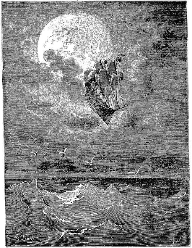 Le dix-huitième jour après que nous eûmes dépassé Otahiti, un ouragan enleva notre bâtiment à près de mille lieues au-dessus de la mer, et nous maintint dans cette position pendant assez longtemps. Enfin un vent propice enfla nos voiles et nous emporta avec une rapidité extraordinaire. Nous voyagions depuis six semaines au-dessus des nuages lorsque nous découvrîmes une vaste terre, ronde et brillante, semblable à une île étincelante. Nous entrâmes dans un excellent port, nous abordâmes et trouvâmes le pays habité. Tout autour de nous, nous voyions des villes, des arbres, des montagnes, des fleuves, des lacs, si bien que nous nous croyions revenus sur la terre que nous avions quittée.