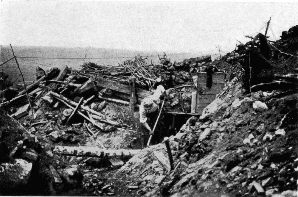 Owing to the difficulty of approaching the enemy trenches in the open, advances were made by pushing saps ahead, or by blowing them up with mines. On both sides incessant digging of galleries and mine-chambers went on underground, whence a race in speed and skill between the opposing sappers, for it was a case either of blowing up the enemy first, or being blown up by him. Over the mine-destroyed trenches, through the smoke and under the rain of earth and stones caused by the explosions, the soldiers dashed forward to occupy the new shell-crater, or to fight for it if the enemy had reached it first. Then would follow a bloody hand-to-hand struggle with grenades, knives, bayonets, daggers, axes, etc., resulting in the gain of a few yards of ground.