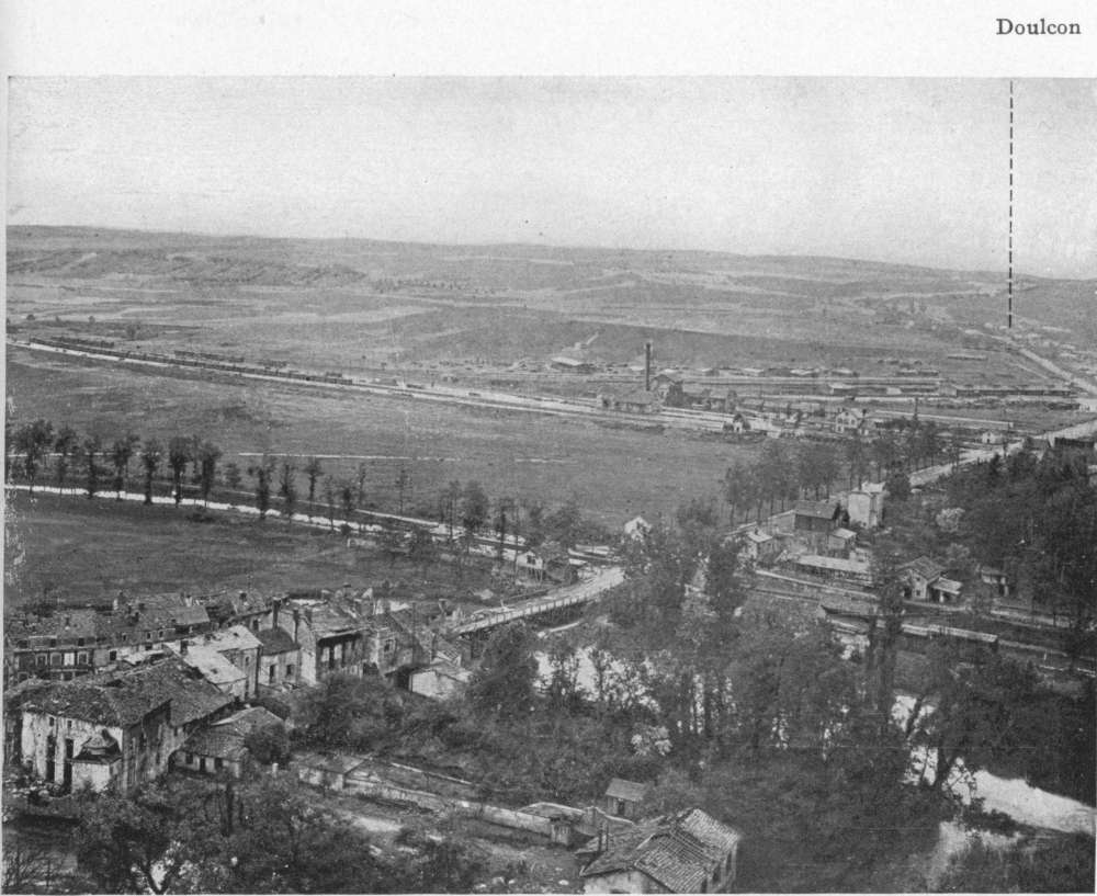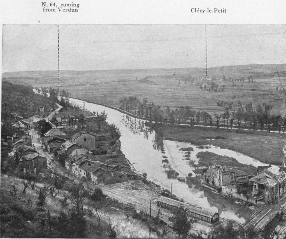 (1) The main road from Varennes to Vienne-le-Château, via the Four-de-Paris, where a road running north-south branches, crossing at Les Islettes, the “National Road,” and the railway from Châlons-sur-Marne to Verdun, via Sainte-Menehould.