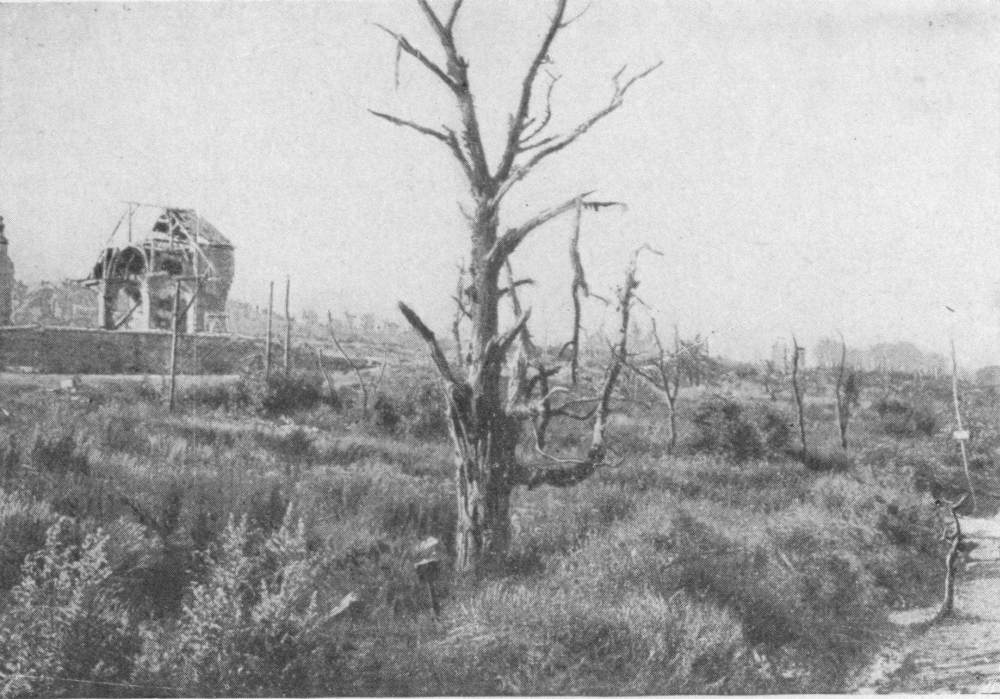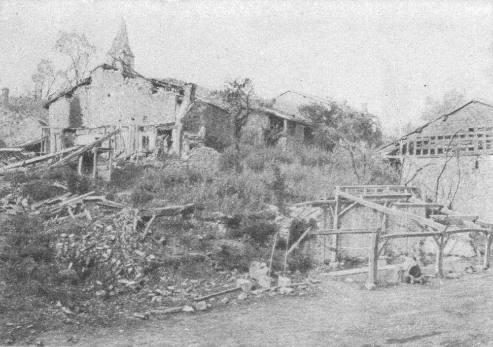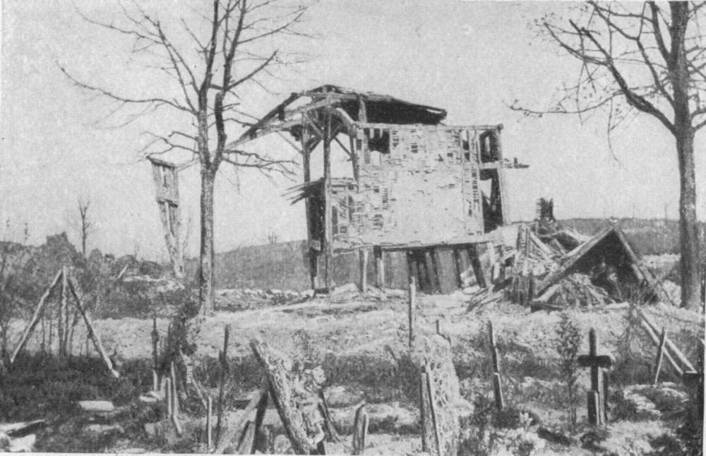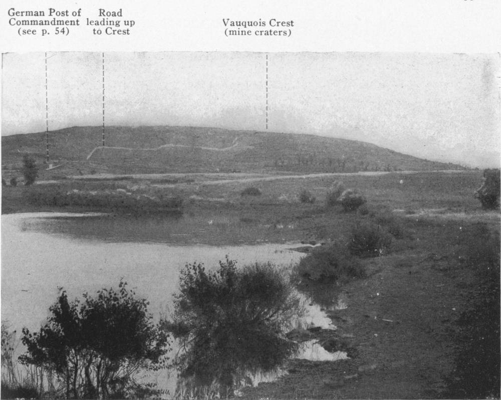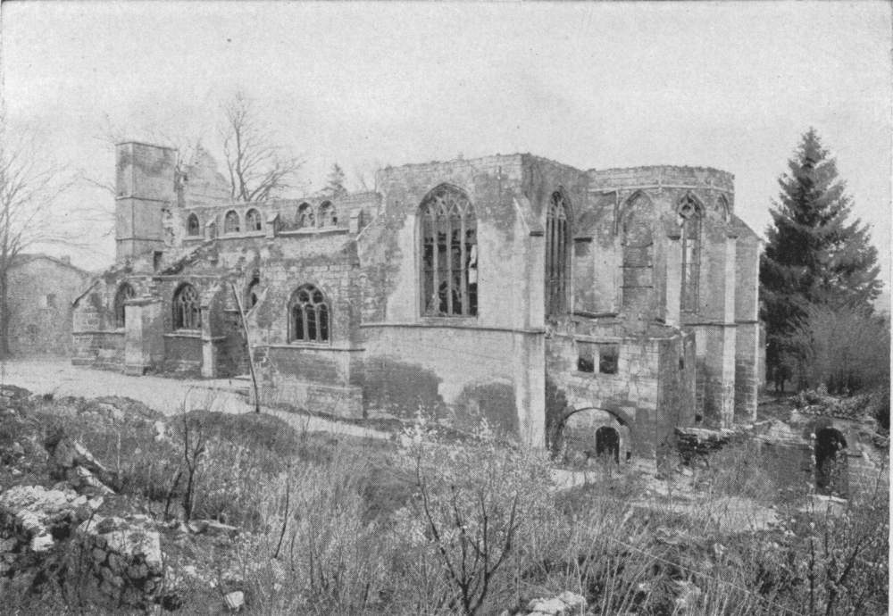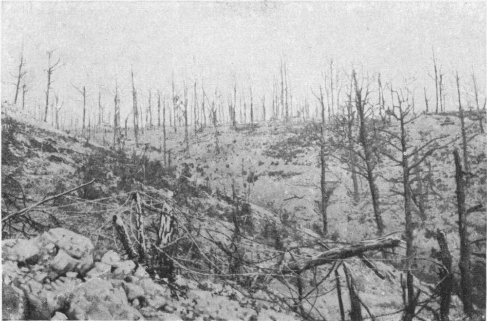 These picturesque spots have often charming names: Bois de la Viergette, Ruisseau des Emerlots, Fontaine la Houyette, Fontaine-aux-Charmes, Fontaine-Madame and Bagatelle. Sometimes the names are quaint: Fille-Morte, Moulin del’Homme Mort, Ferme-la-Mitte, Chêne Tondu and Courte-Chausse. Below the long ridge, which forms, as it were, the backbone of the forest, the Chemin de la Haute-Chevauchée, and, a little further west, the Pavillon St. Hubert evoke memories of bygone hunting-parties. All these names, yesterday but little known, are to-day famous, as for months they recurred almost daily in the Communiqués of the Great War, and each of them brings to mind, not one battle only, but a series of battles, fierce struggles, and hand-to-hand encounters in the dense undergrowth.