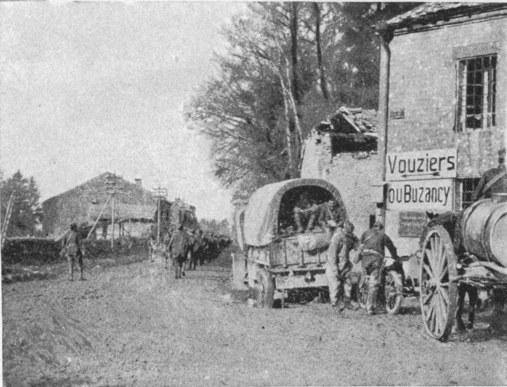 The German forces, following the retreat of the French Armies, slipped in on either side of the thick woods of the Argonne, along the Valleys of the Aisne and the Aire.