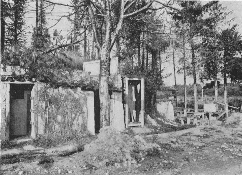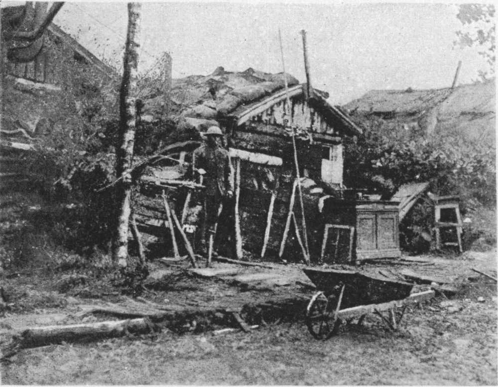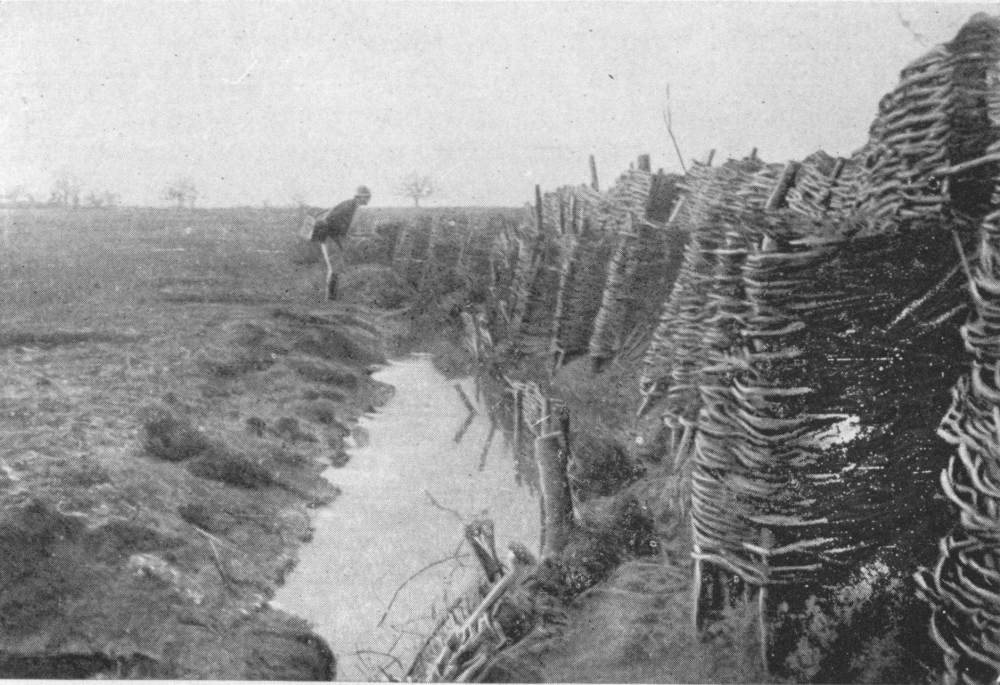 The innumerable springs give rise to excessive moisture. Tiny rivulets intersect the clay soil, and mud collects easily, making the paths impassable. Log roads had to be made in order to facilitate the bringing up of reliefs and supplies. Trenches were no sooner dug than they filled with water and mud, necessitating continuous baling, often with makeshifts such as pails, shovels, dishes, mess-tins, etc.