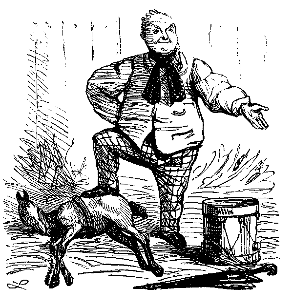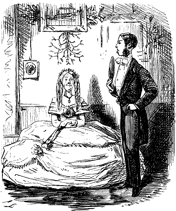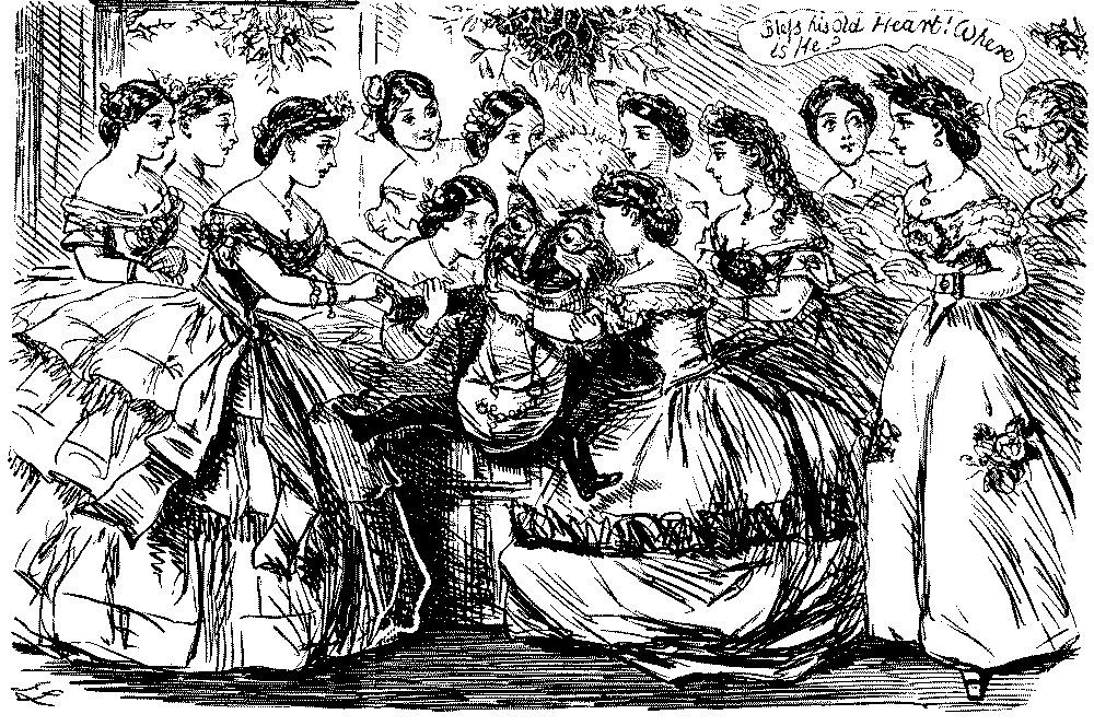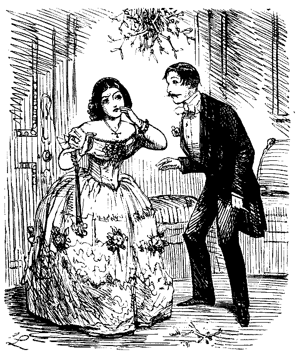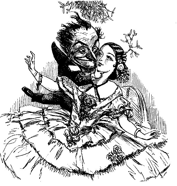 THAT DISTINGUISHED RIFLE-SHOT, MR. PUNCH, HAVING DONE HIS DUTY LIKE A MAN, THROWS HIMSELF UNDER THE MISTLETOE, AND RECEIVES HIS JUST REWARD.