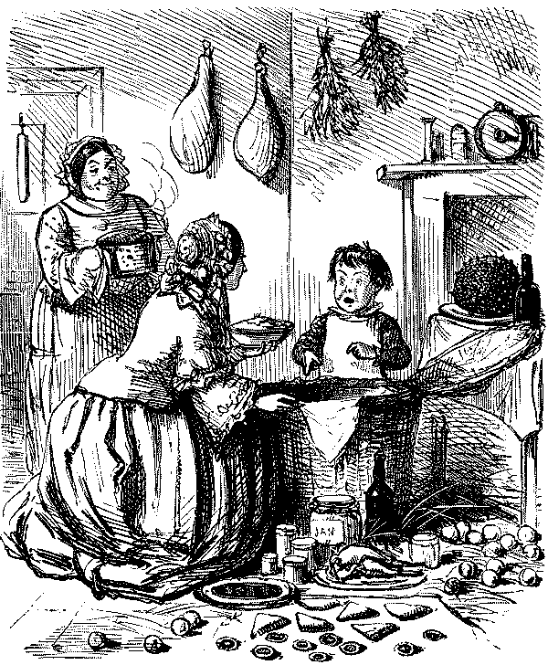 Little Sister. "OH, NO, PAPA DEAR, IT CAN'T BE THAT. HE EAT THE THINGS OUT OF THE CRACKERS, BUT HE DIDN'T TOUCH THE SEED CAKE!"