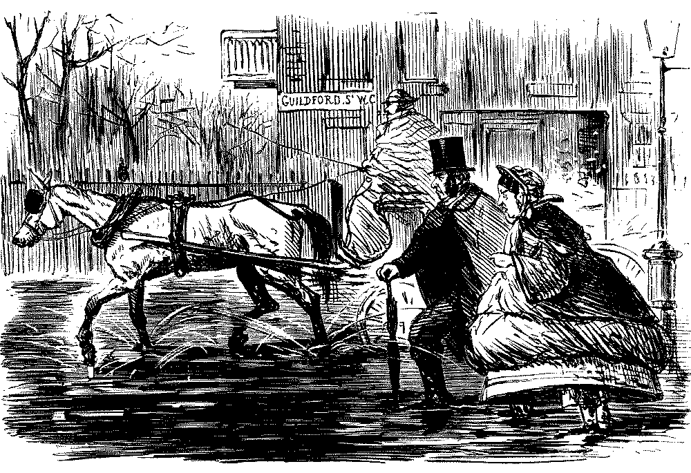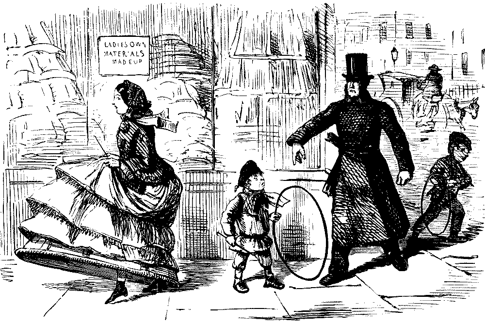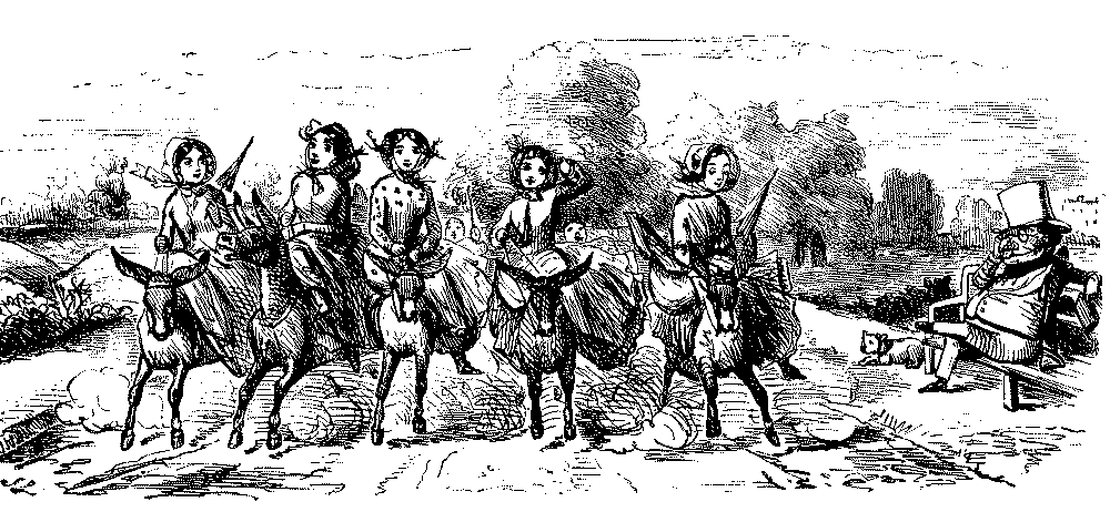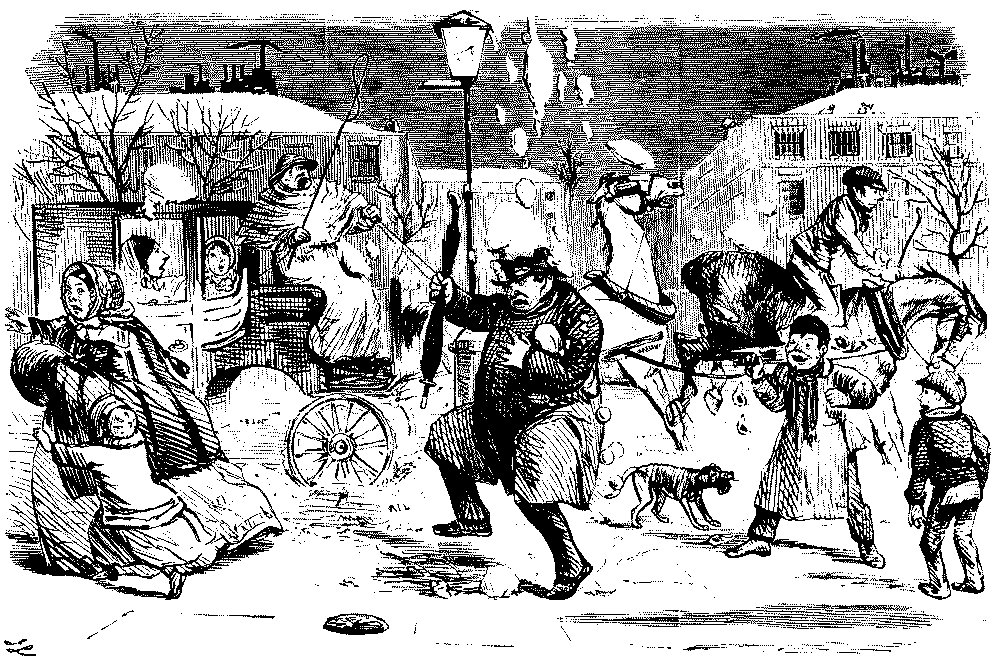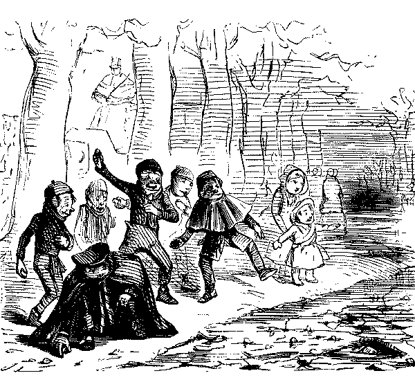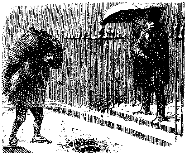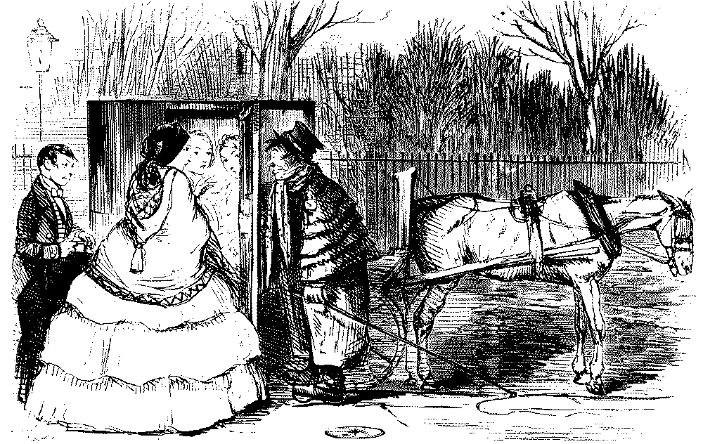 BAD AND SLIPPY," THAT HE IS OBLIGED TO WALK WITH HIS DARLINGS THE GREATER PART OF THE WAY HOME.