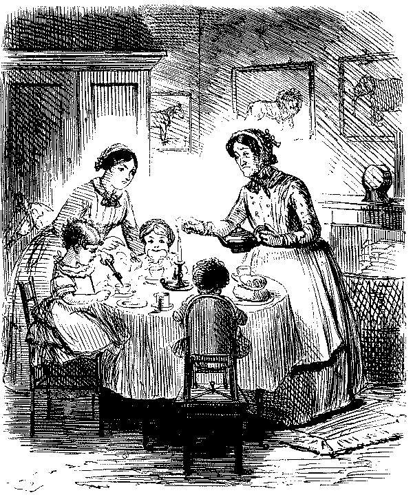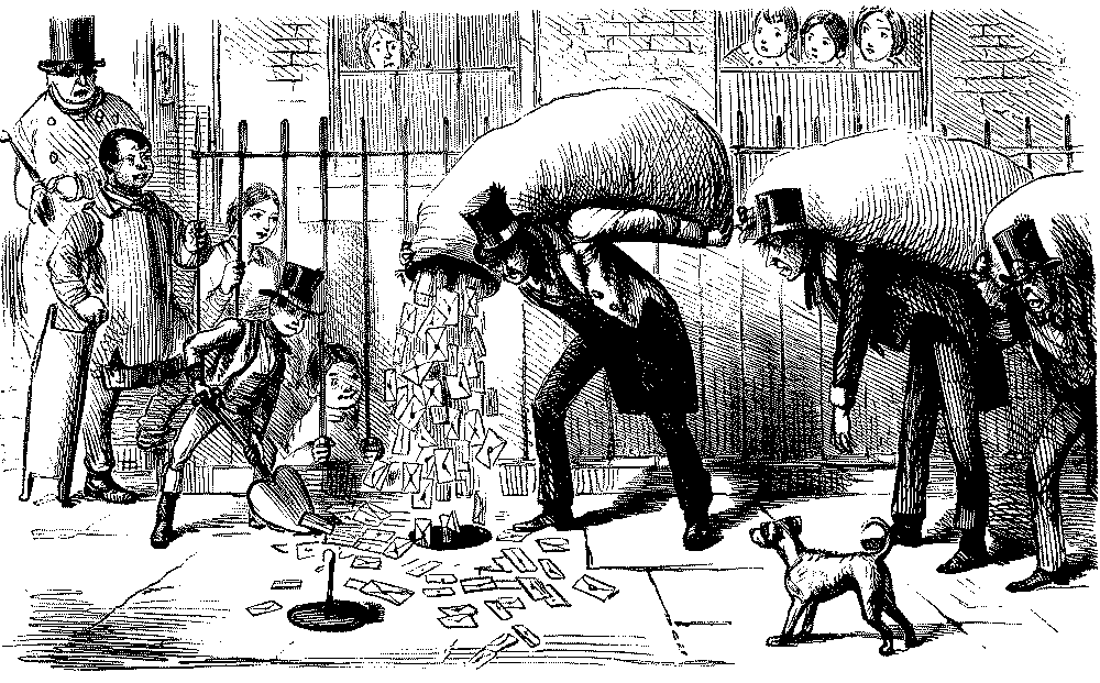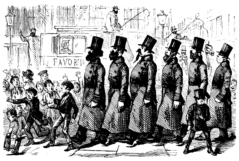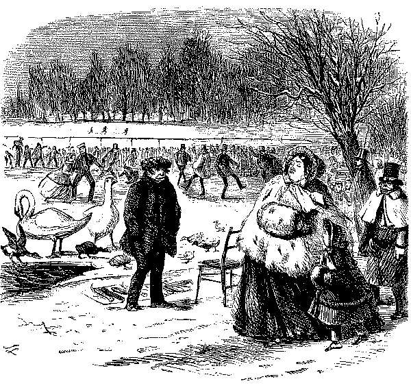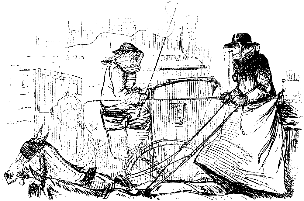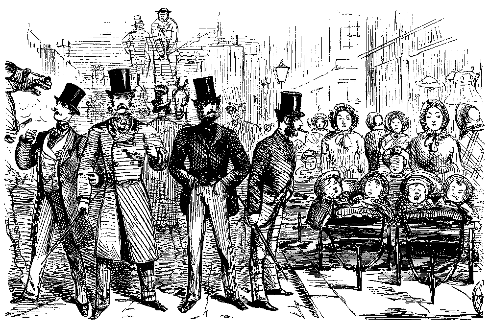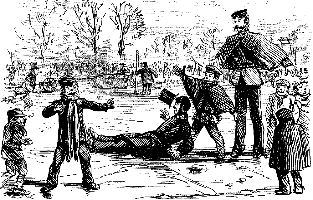 BAD AND SLIPPY," THAT HE IS OBLIGED TO WALK WITH HIS DARLINGS THE GREATER PART OF THE WAY HOME.