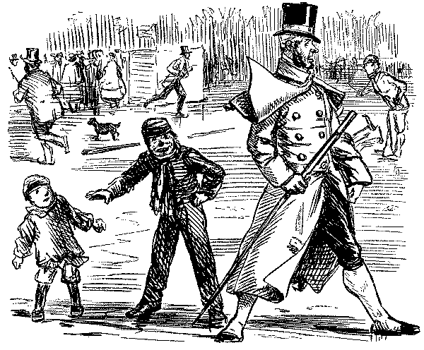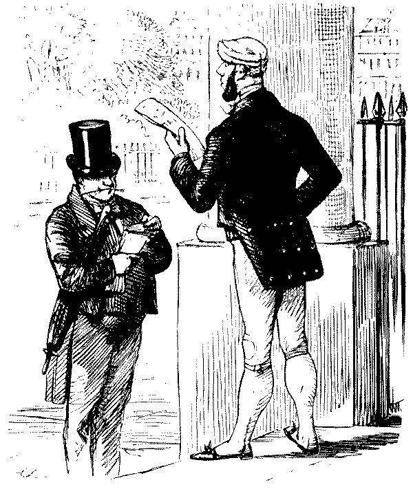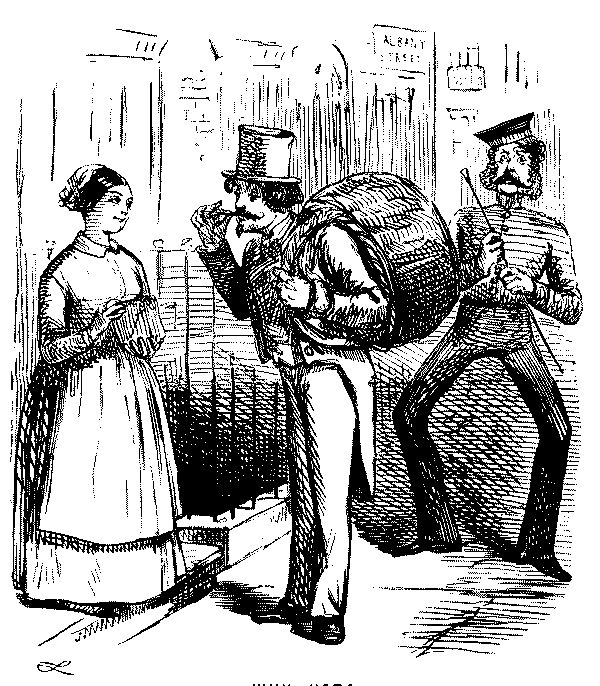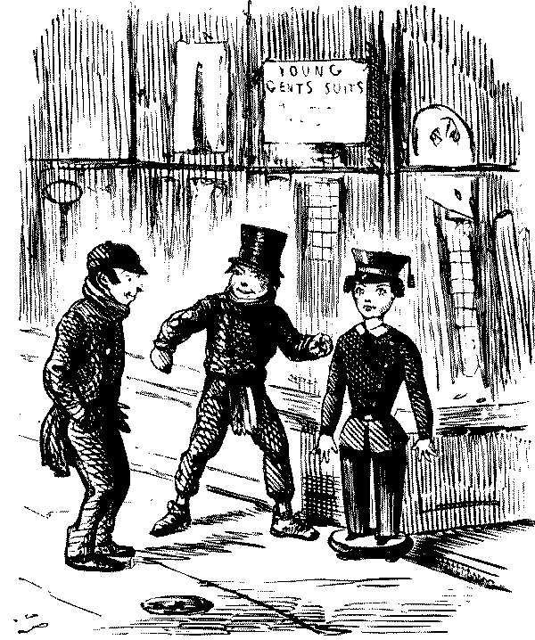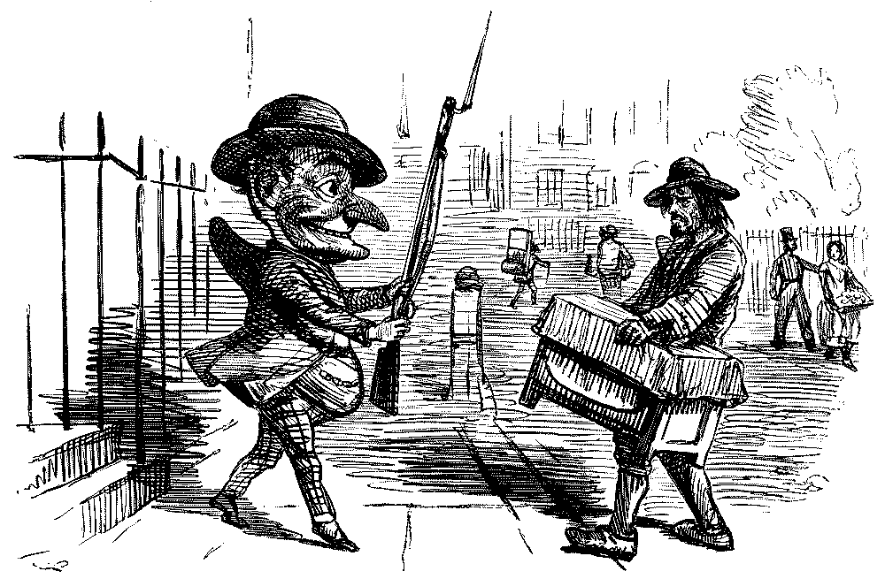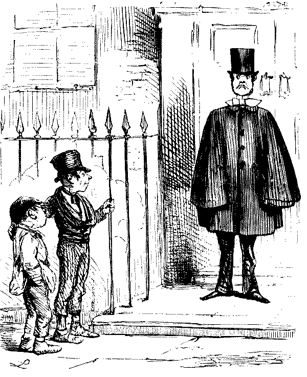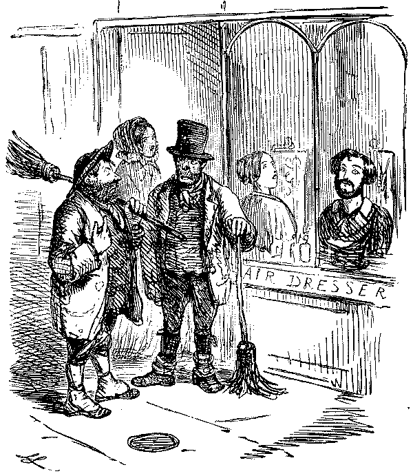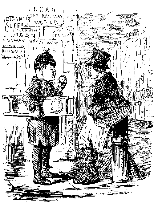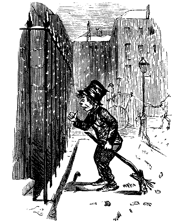 Street Boy. "I SAY, COOKY? THEY JUST ARE A-FININ' OF 'EM ALL ROUND THE SKVARE—GIVE US A SHILLIN' AND I'LL SWEEP YOUR DOOR AFORE THE PLEECEMAN COMES."