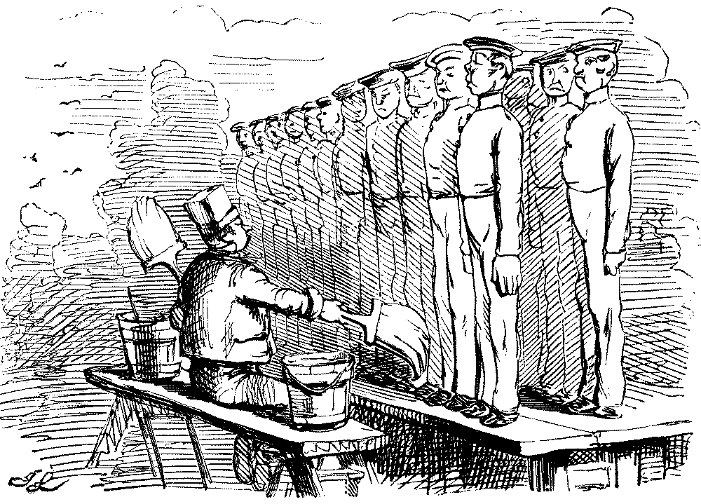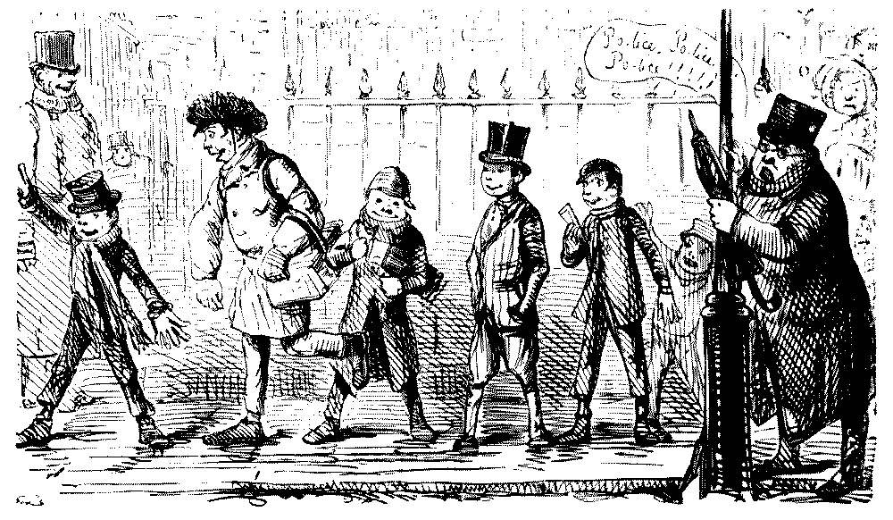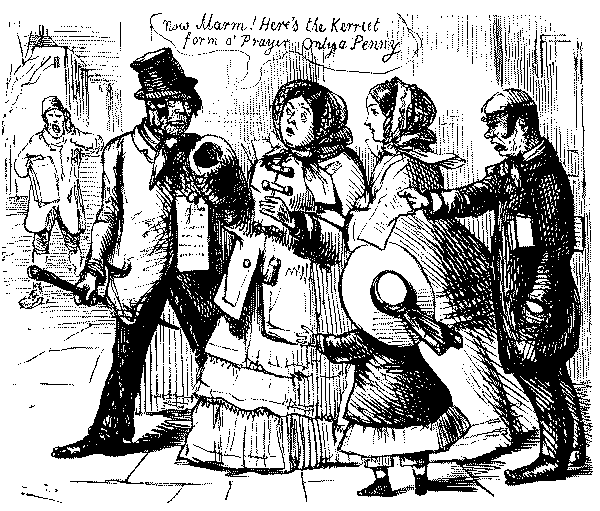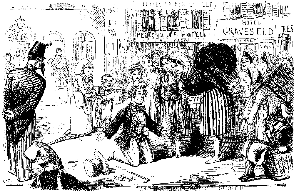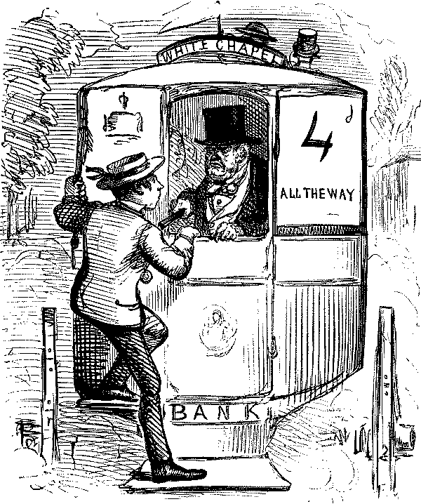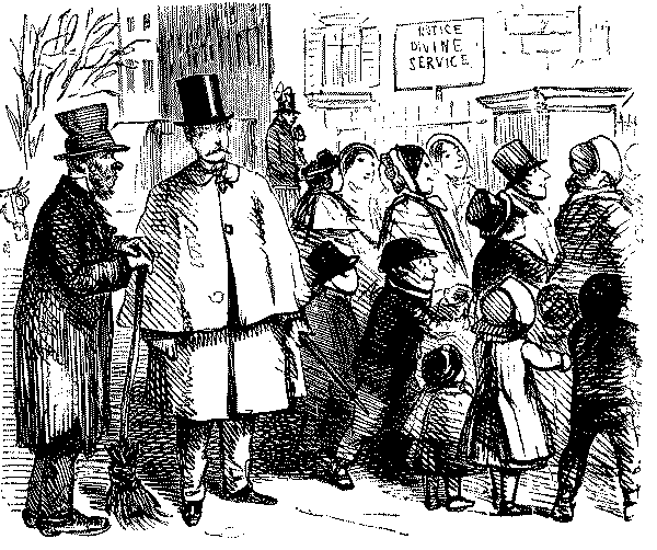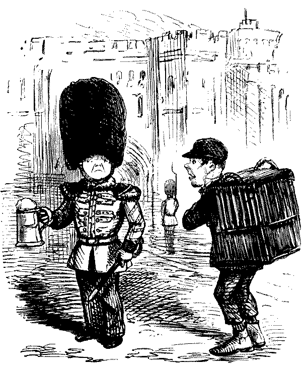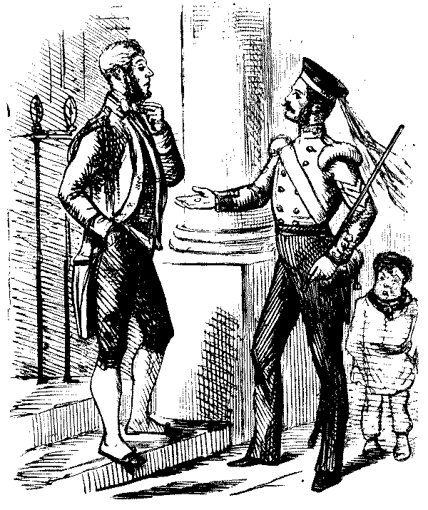 Street Boy. "I SAY, COOKY? THEY JUST ARE A-FININ' OF 'EM ALL ROUND THE SKVARE—GIVE US A SHILLIN' AND I'LL SWEEP YOUR DOOR AFORE THE PLEECEMAN COMES."
