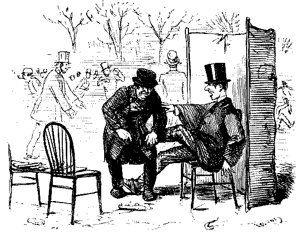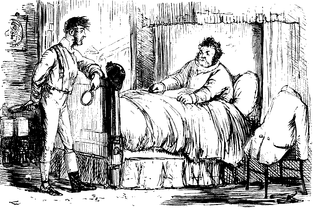 OF ALL FOOLISH THINGS, THE MERE PUN IS PERHAPS THE MOST FOOLISH.—NOW, HERE'S A FELLOW (PROBABLY A MEMBER OF THE ST—CK EXCH—GE) WHO, IN SPITE OF HIS REALLY PERILOUS CONDITION, SAYS, "THAT HE CAME OUT FOR A (W)HOLE HOLIDAY—AND HAS GOT IT!"