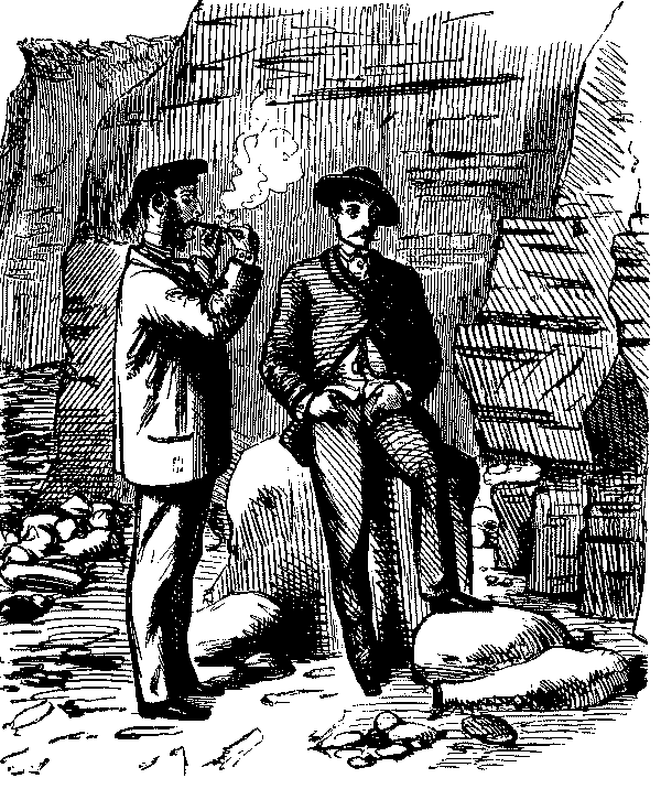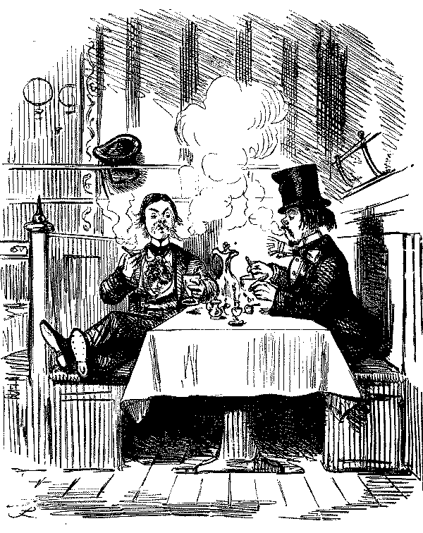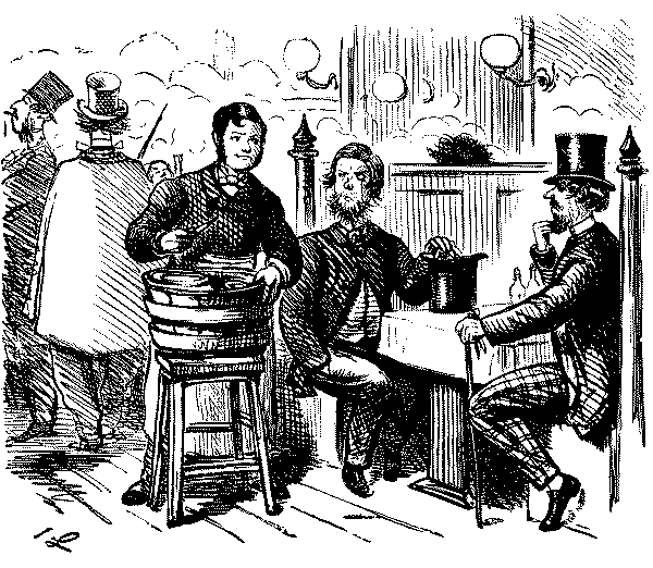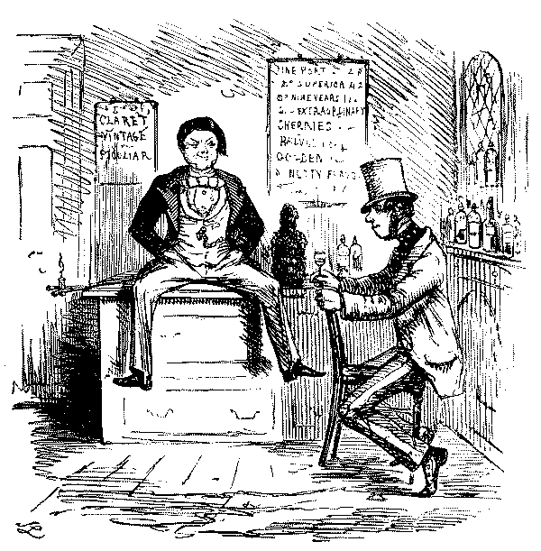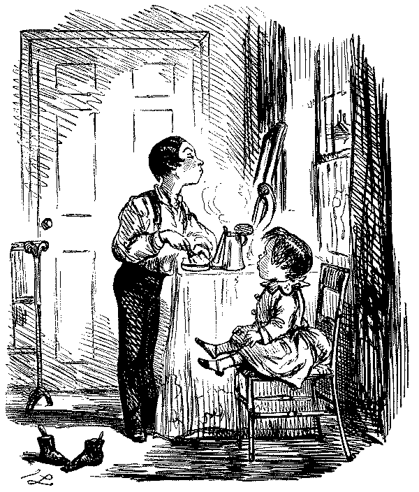 Walter. "AH! DON'T WE, JUST!—LAST HALF THERE WAS CHARLEY BOGLE, AND GEORGE TWISTER AND ME—WE JOINED YOU KNOW—AND HAD TWO POUNDS OF SAUSAGES, COLD, AND A PLUM CAKE, AND A BARREL OF OYSTERS, AND TWO BOTTLES OF CURRANT WINE!—OH, MY EYE! WASN'T IT JOLLY, NEITHER!"