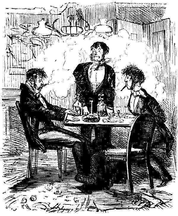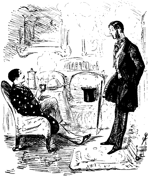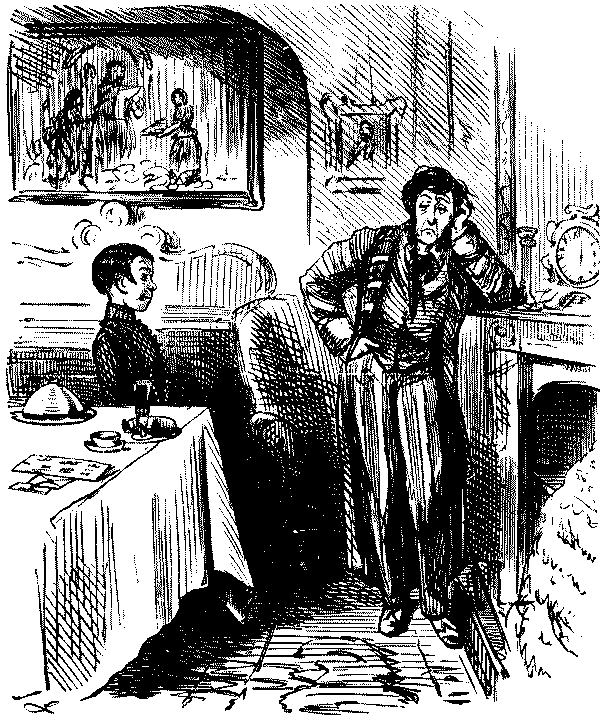George. "H'M! I SHOULD RATHER FANCY NOT.—YOU DON'T CATCH ME GOING OUT OF AN EVENING JUST TO FURNISH PEOPLE'S ROOMS. WHERE I GO—I DINE!"
