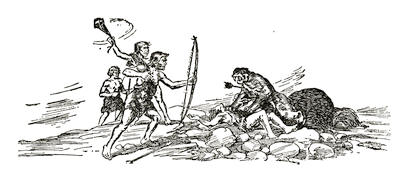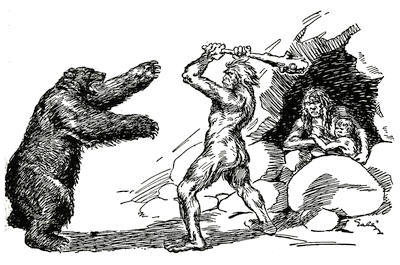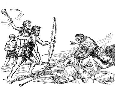 During all these long centuries, many, many thousands of years, the people from the valley where Adh and his wife first lived had been spreading far out over the surface of the earth. Many boats and canoes, carried by storms from the country of the sea people, were driven to other countries, and all around the shores of the sea new tribes were springing up. Century after century, as these tribes became larger, and game grew scarce, new bands of adventurers wandered off into the wilderness inland, and from the tribes they formed still other bands wandered away. Some crossed great lakes and seas in boats, others drifted down mighty rivers for hundreds, and even thousands, of miles, on rafts. Mountain ranges were crossed to find new hunting grounds, and new tribes were formed, which in their turn sent out other bands of adventurers.[286] During all this time the face of the earth was changing. Great glaciers from the frozen north crept southward century after century, grinding the surface of the rocks like giant ploughs. Earthquakes and floods caused new continents to rise where before there had been only seas, or made seas, in places where there had been dry land. Mother Nature's new race of men had to fight the heat and the cold, the storms and the sea, as well as the fierce animals which were always ready to attack them, but in spite of all these things, they spread and grew, year after year, until the earth began to be covered with them.