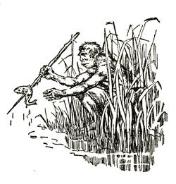 Having no marsh grass from which to weave cloth, the tribe began once more to use skins and furs for clothing, and to eat more meat, and less fish, than they had eaten in their old home. The country of the sea people had been flat and marshy, while that of the valley tribes was hilly and far from the sea, but in the new home of Tul-Ab and his tribe, they found both the hills and the sea, close together, and so they grew to be like both the sea folk, and the people of the valley and the hills from which they had first come.