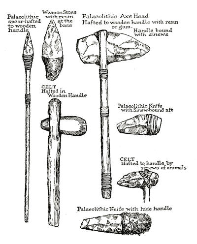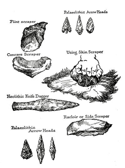 They did wonderful things with their tools of stone. Remains of their work are found in many places, tens of thousands of years old. On the Island of Malta, in the Mediterranean Sea, there has been found an underground temple of great size, with many arched and vaulted rooms, beautifully carved, all of which were cut out of the solid rock with axes and chisels of flint. In other places wonderful temples, tombs and buildings of various sorts have been discovered, built of great cut stones, and we wonder how such huge rocks could ever have been squared and polished so beautifully with nothing but tools of stone.