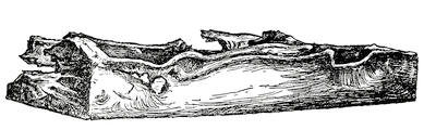 Modor was the first man to build one of these boats and he was a skilful carpenter. He hewed a long heavy keel for his boat out of a tree trunk, and at each end he set up a stout post, one for the stem, the other for the stern. Wooden braces, or knees, as they are called, fastened by pegs, held the posts to the keel. Modor's tools were heavy stone axes, wedges of stone to split planks with, saws, made of jagged, toothed pieces of flint, with wooden handles bound to them, sharp flint knives for making wooden pegs, and drills, for boring holes for the pegs. With such rough[254] tools it was not easy for Modor and his companions to build a boat, but they were strong and patient, and worked very hard.