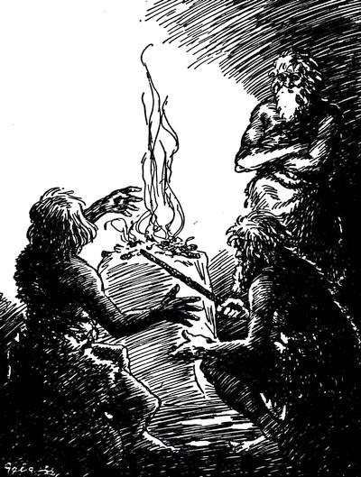 When Modor got back to the village he told[257] the old men what he had seen, and that night around the camp fires they told again the story of Tul-Ab, and sang a song about him, and his coming to the island.