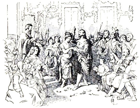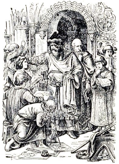 Charles ate and drank with care, never taking too much of either food or drink. During his meals his attendants entertained him with reading and music. He liked the stories and deeds of the olden time and the books of Augustine. He was a good speaker, easily understood.[Pg 481] He loved learning, but had little education himself. He had the famous School of the Palace in his own home to educate his own children and those of the nobles. Wise teachers like Peter of Pisa, and Alcuin of England were brought to his court. He helped the priests in their study and in building schools. Charles loved the church and gave much to aid its educational and religious work. He really brought learning to the people.