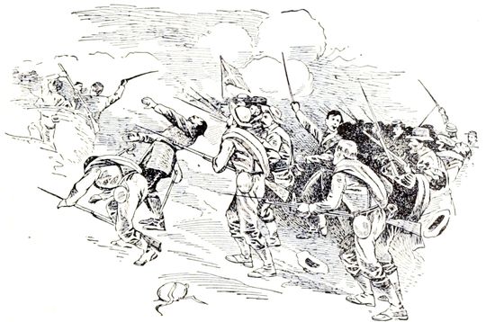 286. He Crosses the Rubicon. There were other great generals in Rome and they now became jealous of Caesar's many victories and of his popularity. They prepared to punish him. But Caesar was too quick for them. He[Pg 473] marched his army rapidly into Italy until he reached a little stream called the Rubicon. To cross this stream meant war—victory or defeat. He stood awhile—so the story runs—in deep study. "The die is cast," said Caesar, and plunged into its waters.