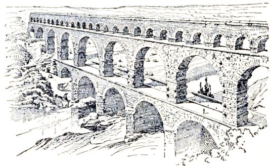 The Romans also built wonderful roads in all parts of the empire for the use of armies and for travel and trade. Some of these roads are still used. They built strong bridges over the rivers and erected aqueducts in different parts of the empire. These Roman aqueducts brought good, pure water from the hills to supply the needs of the townspeople.