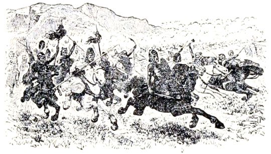 But the Germans were gentle compared with the fierce Huns from Asia who made the next great invasion into Europe. And under their terrible chief, Attila, they swept over Europe like firebrands, laying waste all they could not carry away. At last the Germans and the Romans united and defeated the Huns at Chalons (451). The Huns moved eastward, passed through northern Italy, and soon reëntered Asia. Europe was saved.