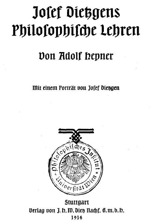 Zur Wertung von Dietzgens Arbeit dürfte das Nachstehende wohl am Platze sein: