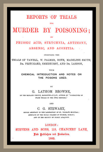 This volume of selected reports of the most remarkable trials for murder by poisoning, which have been held during the past half century, with essays and notes explanatory of the nature, and operation, and methods of detecting the various poisons supposed to have been employed, will it is hoped prove useful to the medical, as well as the legal profession. With this object the evidence of the medical and chemical witnesses has been given in detail, especially in those cases in which a conflict of scientific testimony arose, between experts of the highest professional character and reputation. Care has also been taken to state the scientific nomenclature of this class of witness correctly, a point on which the shorthand writers, otherwise so reliable, are naturally liable to fail, catching as they do only the sounds of a language unknown to them, in reporting which the error even in a single letter is often most important. My colleague, besides furnishing the latest information obtainable with reference to the various poisons, has offered from recent experiments, made specially for this purpose, explanations of those points in the several trials about which the rival experts disputed, bringing to bear on them the latest discoveries in chemical science.