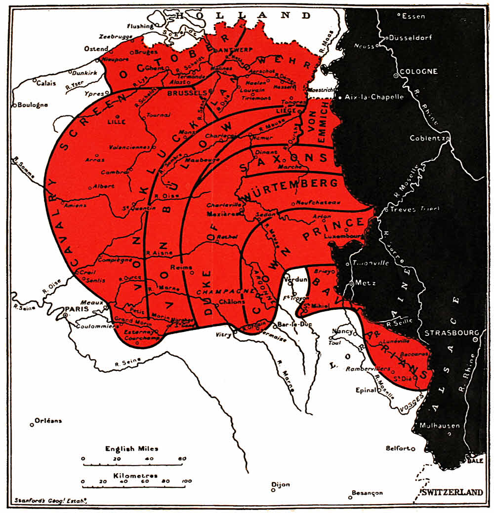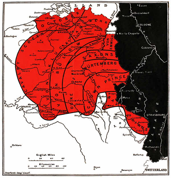 The narrative has been arranged so as to follow separately the tracks of the different German Armies or groups of Armies which traversed different sectors of French and Belgian territory. Within each sector the chronological order has been followed, which is generally identical with the geographical order in which the places affected lie along the route of march. The present volume describes the invasion of Belgium up to the sack of Louvain.