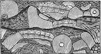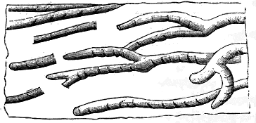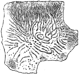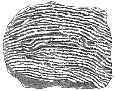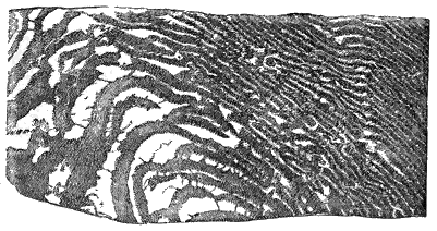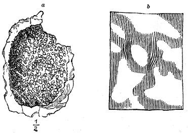 "Messrs. King and Rowney, it will be observed, assume the existence of calcite as a replacement pseudomorph after serpentine, but give no evidence of the possibility of such pseudomorphs. Both Rose and Bischof regard serpentine itself as in all cases, of pseudomorphous origin, and as the last result of the changes of a number of mineral species, but give us no example of the pseudomorphous alteration of serpentine itself. It is, according to Bischof, the very insolubility and unalterability of serpentine which cause it to appear as the final result of the change of so many mineral species. Delesse, moreover, in his carefully prepared table of pseudomorphous minerals, in which he has resumed the results of his own and all preceding observers, does not admit the pseudomorphic replacement of serpentine by calcite, nor indeed by any other species.[AV] If, then, such pseudomorphs exist, it appears to be a fact hitherto unobserved, and our authors should at least have given us some evidence of this remarkable case of pseudomorphism by which they seek to support their singular hypothesis.