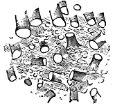 Foraminiferal skeletons, with irregular and often confluent cells, arranged in concentric and horizontal laminæ, or sometimes piled in an acervuline manner. Septal orifices irregularly disposed. Proper wall finely tubulated. Intermediate skeleton with branching canals.
