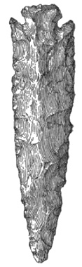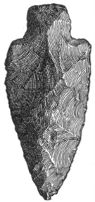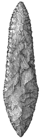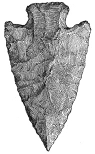 According to Dr. E. B. Tylor, the flint arrows of the Dakota, the Apache, or the Comanche might easily be mistaken for the weapons dug up on the banks of the Thames;1 while cores of flint in Scandinavia and of obsidian in Mexico are exactly alike,2 and a tray filled with European arrowheads can not be distinguished from a tray of American ones.3 Prof. Otis T. Mason observes that the great variety of form in such weapons after they are finished is due partly to nature and partly to the workman’s desire to produce a certain kind of implement. All sorts of pebbles lie at the hand of the savage mechanic, none of them just what he wants. He selects the best.4 Perhaps the truth about the shape is that the savage found it thus and let it so remain.5 59