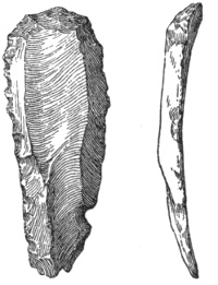 On the whole, it seems most probable that many of the simpler weapons, implements, etc., have been invented independently by various savage tribes. Though they are remarkably similar, they are at the same time curiously different. The necessaries of life are simple and similar all over the world. The materials with which men have to deal are also very much alike; wood, bone, and to a certain extent stone, have everywhere the same properties. The obsidian flakes of the Aztecs resemble the flint flakes of our ancestors, not so much because the ancient Briton resembled the Aztec, as because the fracture of flint is like that of obsidian. So also the pointed bones used as awls are necessarily similar all over the world. Similarity exists, in fact, rather in the raw material than in the manufactured article, and some even of the simplest implements of stone are very different among different races.7