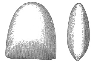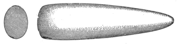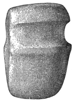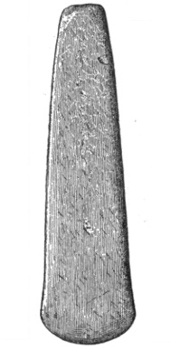 In the eastern and interior states, the grooved axes are far more abundant than the celts of the same size9, because as a rule only the larger implements of this class are grooved. All the ordinary varieties of axes and hatchets are found about Lake Champlain, by far the most abundant being celts, or grooveless axes.10