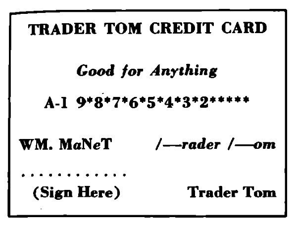 "I only meant—but never mind. We give you what you want. As for paying for it—why, forget about the payment. You may apply for a Trader Tom Credit Card."