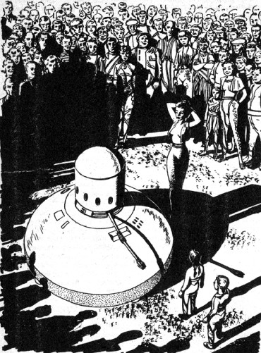 Which was not completely inaccurate. The lower part of Robie's body was a metal hemisphere hemmed with sponge rubber and not quite touching the sidewalk. The upper was a metal box with black holes in it. The box could swivel and duck.
