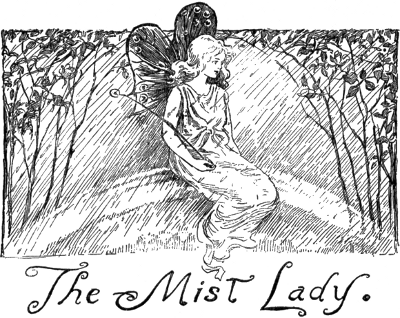 Presently the eastern sky grew rosy; and flying toward them from its radiance, came a great white angel bearing in his arms golden shafts of light. The lady and the little girl veiled their faces as he passed them by. Then, hastening home, the little girl found herself in bed just as the sun’s first beams kissed her face. The Mist Lady had whispered to her that she would come again; so she sank into a quiet, happy sleep, and her mother found her smiling, when she came to help her to dress.