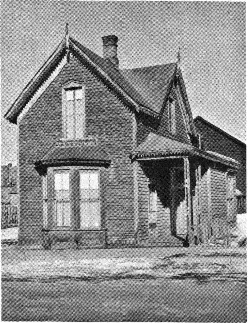 This little clapboard dwelling originally stood on Harrison Avenue, Leadville, where the Opera House is now. It was moved to its present place on Fifth Street in 1879. In 1955 it was opened as a small shop-museum. It now stands alone on the block, but for many years it was huddled against a clapboard false-front assay office on one side and small residences on the other.