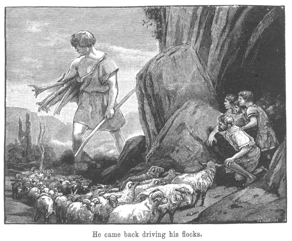 And Æson wept over his son and went away; but the boy did not weep, so full was his fancy of that strange cave, and the Centaur, and his song, and the playfellows whom he was to see. Then Chiron put the lyre into his hands, and taught him how to play it, till the sun sank low behind the cliff, and a shout was heard outside. And then in came the sons of the heroes,—Æneas, and Hercules, and Peleus, and many another mighty name.{16}