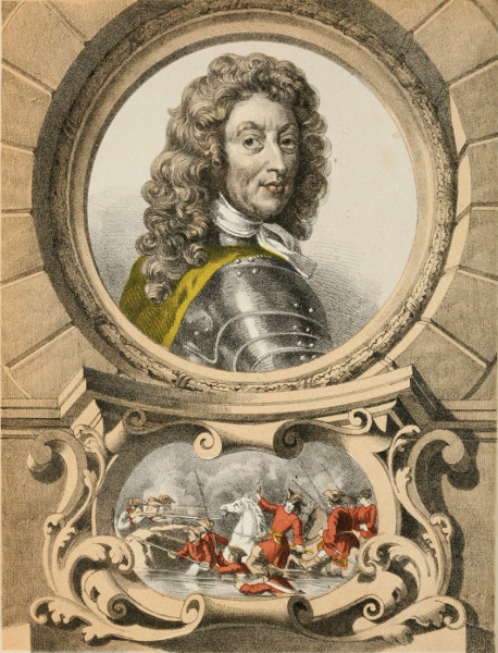 The Earl of Argyle, a nobleman of great merit, and for some time enjoying the esteem of his sovereign, being suspected of a leaning to the Nonconformists, or Covenanters, at the instigation of the Duke of York was arraigned for treason, and, accordingly, condemned to death. Escaping to France, Argyle returned in 1685, and landing with a force of 300 men in Argyleshire, summoned his clansmen, and endeavoured, with little success, to raise the Presbyterians, and so, setting up the standard of rebellion, threatened to dethrone James II., who but lately had succeeded his brother in the throne. After much fruitless manœuvring, he advanced into the Lowlands, but was met by the royal troops, including the Royal Scots Dragoons, near 18Dumbarton, under the Earl of Dumbarton. Attempting to retreat in the darkness of the night, his guides betrayed him, his army fell into disorder and disbanded, whilst he himself was taken prisoner and afterwards executed at Edinburgh. On the morrow, the Royal Scots Dragoons, assisted by other troops, attacked a considerable body of the rebels under Sir John Cochrane, which still remained together in the neighbourhood in a strongly fortified position. After hard fighting, in course of which the dragoons dismounted and fought hand to hand on foot, and after the loss of many officers, among whom were Sir Adam Blair, Sir William Wallace, and Capt. Clelland, also Lord Ross wounded, the rebels were driven back and ultimately dispersed.