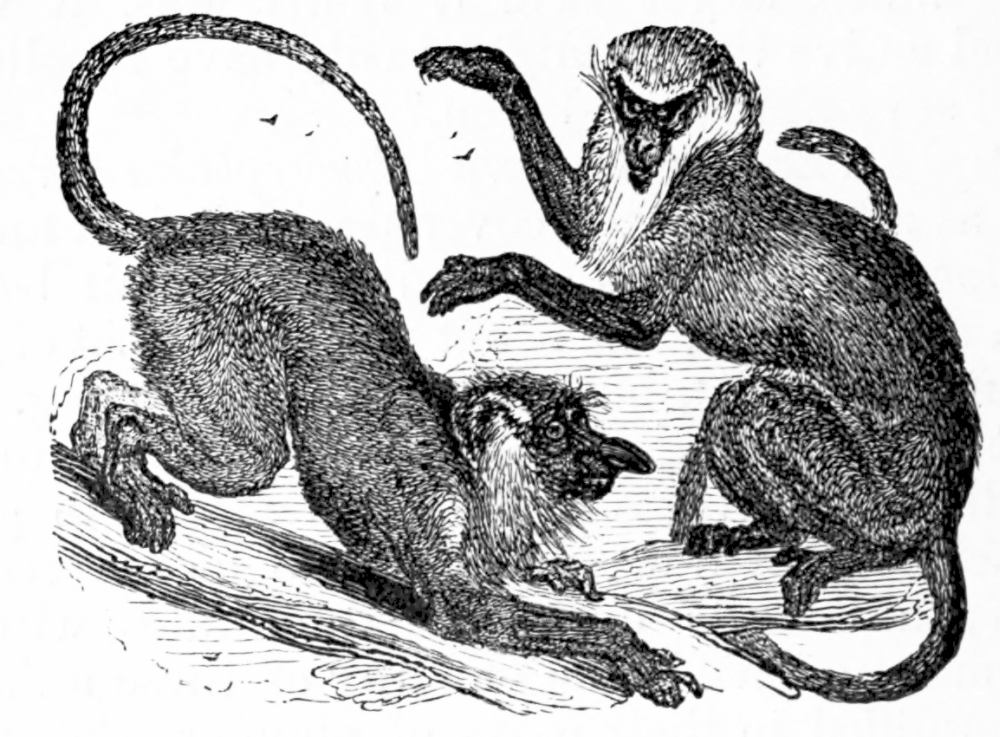 I. Primates.—Having the upper front teeth, generally four in number, wedge-shaped, and parallel; and two teats situated on the breast, as the apes and monkeys.