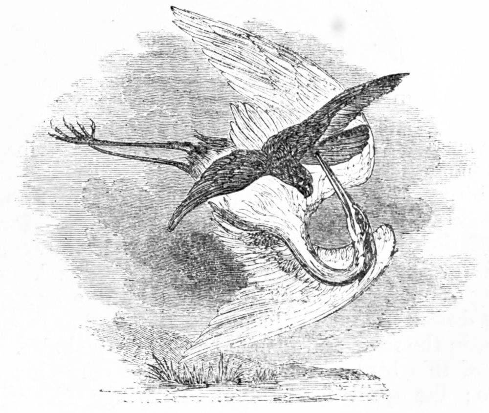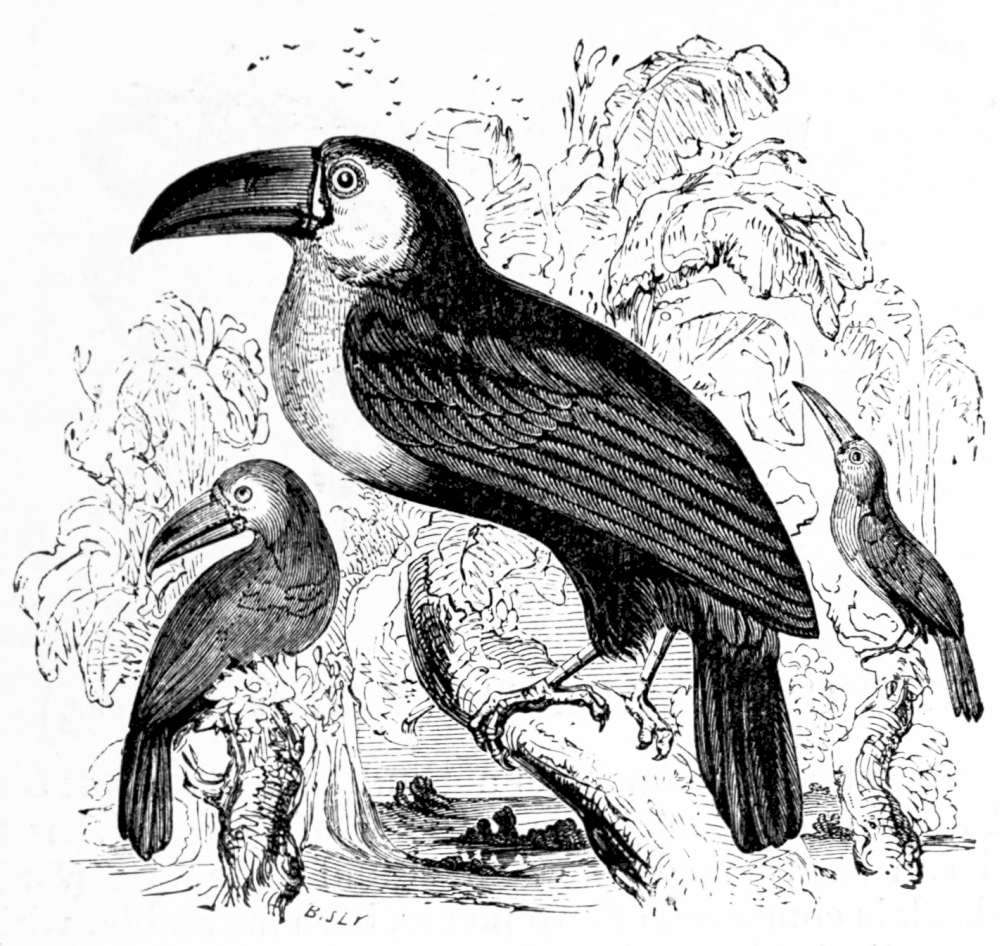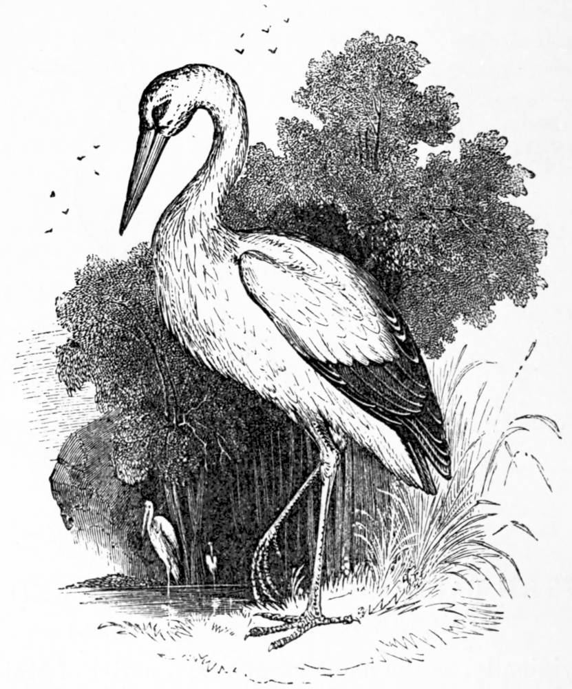 The second class, or Birds, comprises all such animals as have their bodies clad with feathers. Their jaws are elongated, and covered externally with a horny substance, called a bill or beak, which is divided into two parts called mandibles. Their eyes are furnished with a thin, whitish, and somewhat transparent membrane, that can at pleasure be drawn over the whole external surface like a curtain. Their organs of motion are two wings and two legs; and they are destitute of external ears, lips, and many other parts which are important to quadrupeds. That part of Zoology which treats of Birds is called Ornithology.